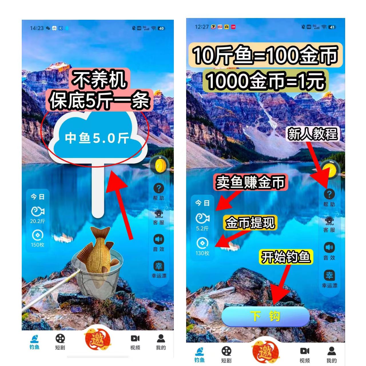 鱼乐视频 零撸,钓鱼广告赚米不养机,保底5斤一条鱼